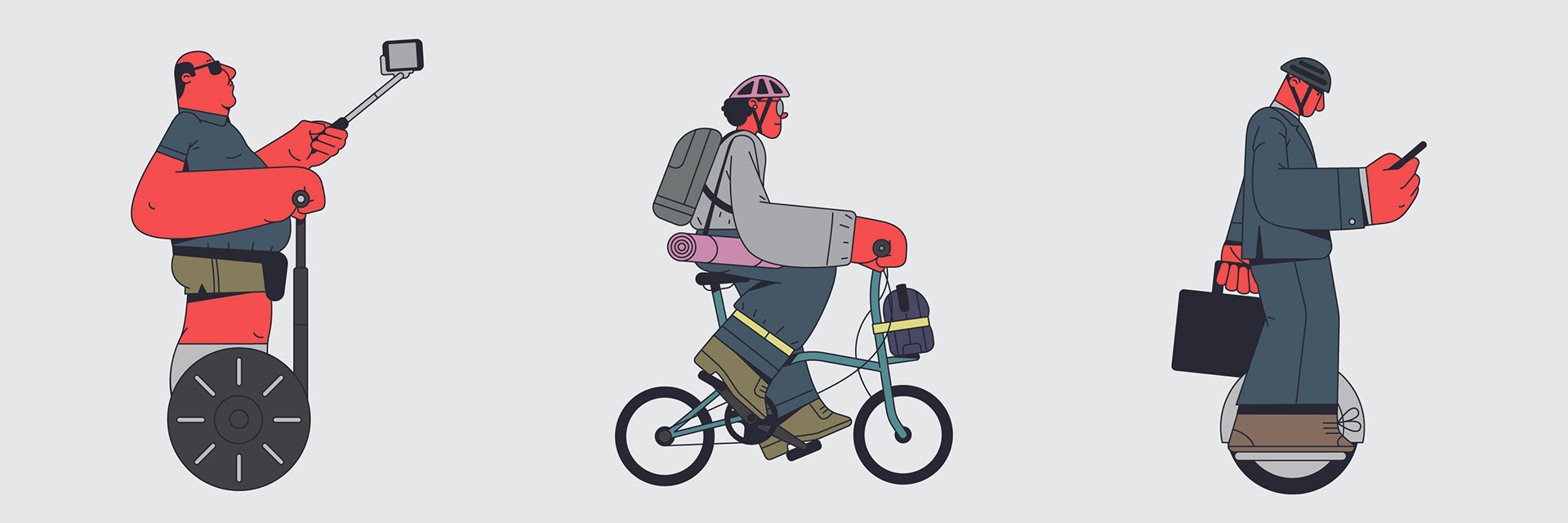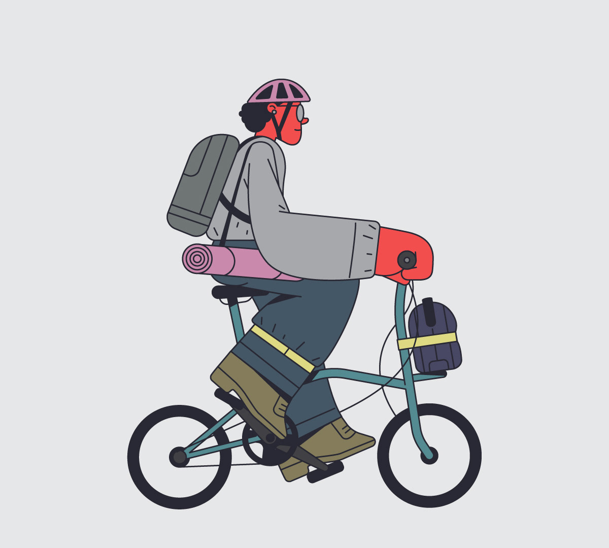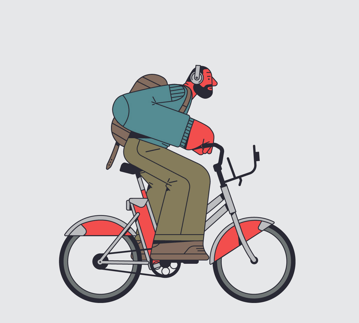 The bike ways in Barcelona are wild, there is an eclectic mix of vehicles and characters. I wanted to portrait this crazy ride I see everyday during my commuting. Design & Illustration: David Pocull