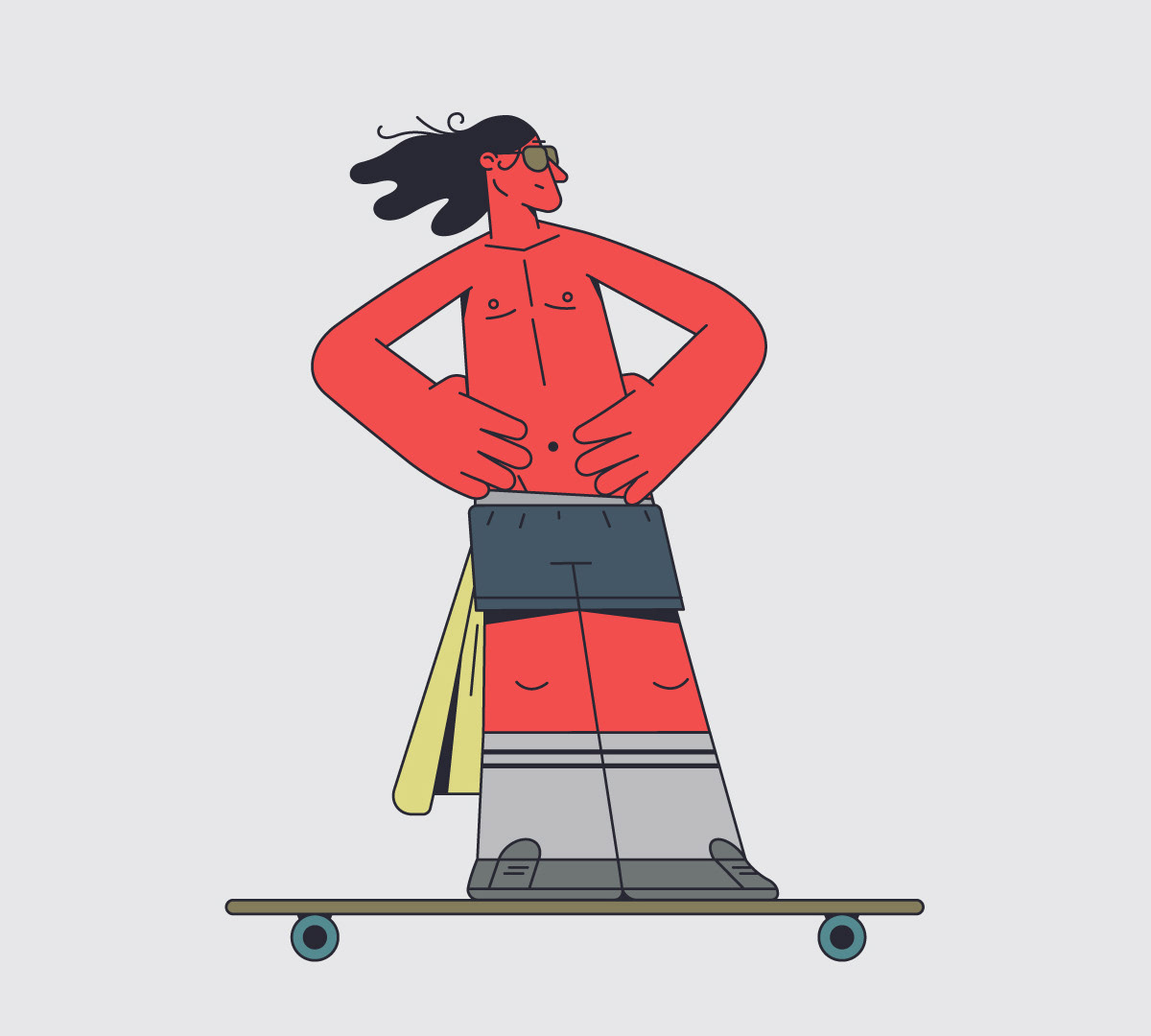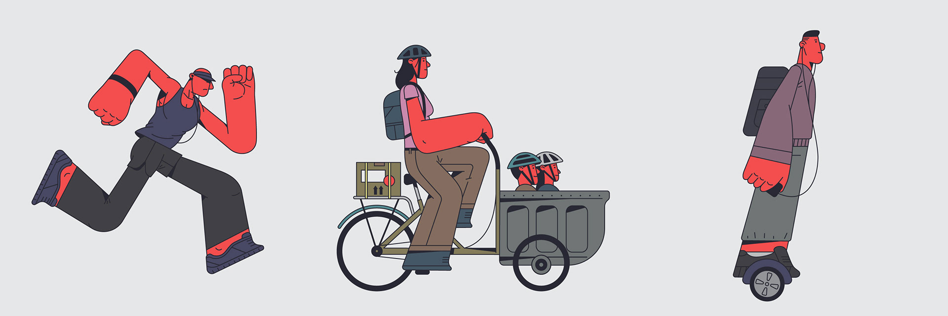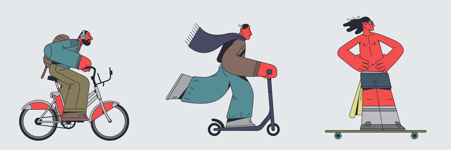 The bike ways in Barcelona are wild, there is an eclectic mix of vehicles and characters. I wanted to portrait this crazy ride I see everyday during my commuting. Design & Illustration: David Pocull